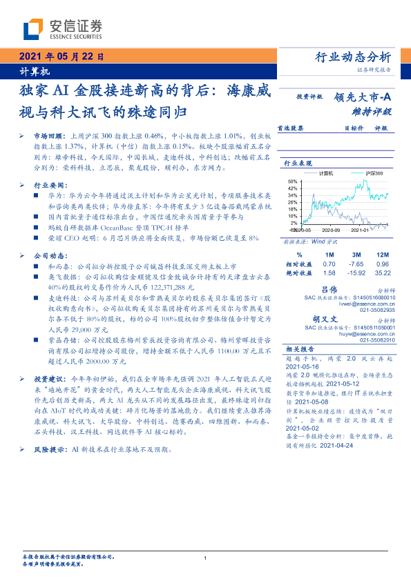 【安信证券】【20210522】独家AI金股接连新高的背后:海康威视与科大讯飞的殊途同归-22页