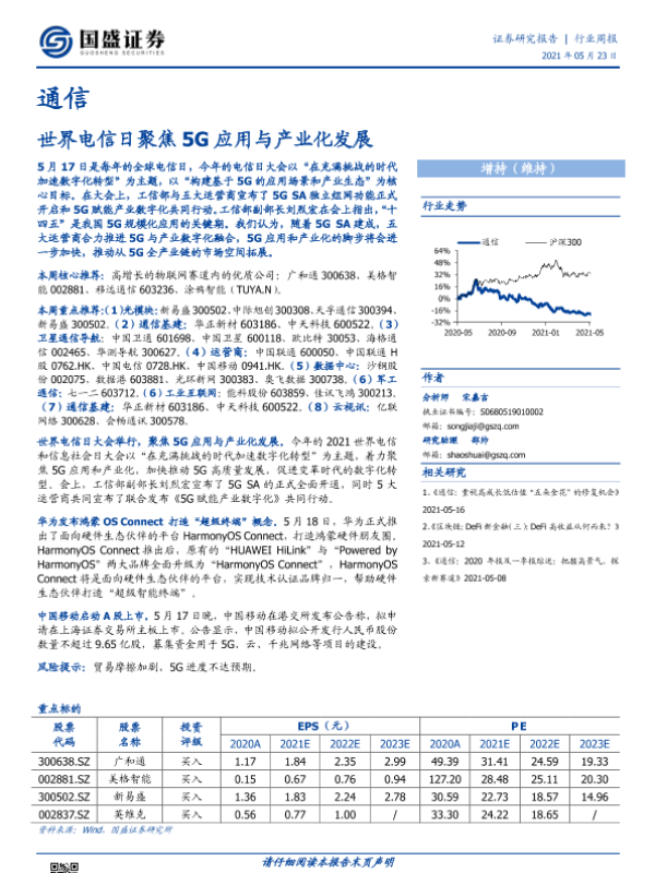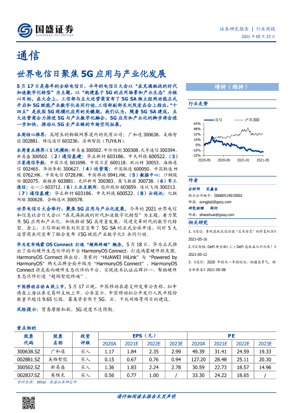 【国盛证券】【20210523】通信行业周报:世界电信日聚焦5G应用与产业化发展-14页