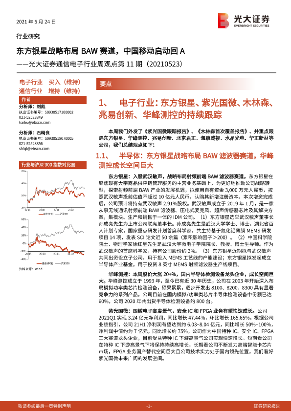 【光大证券】【20210524】20210524-光大证券-通信电子行业周观点第11期:东方银星战略布局BAW赛道,中国移动启动回A-10页
