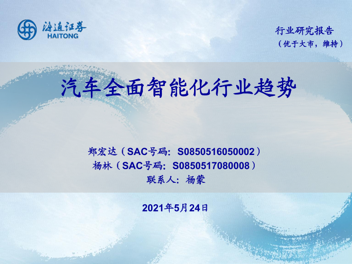 【海通证券】【20210524】计算机行业:汽车全面智能化行业趋势-25页