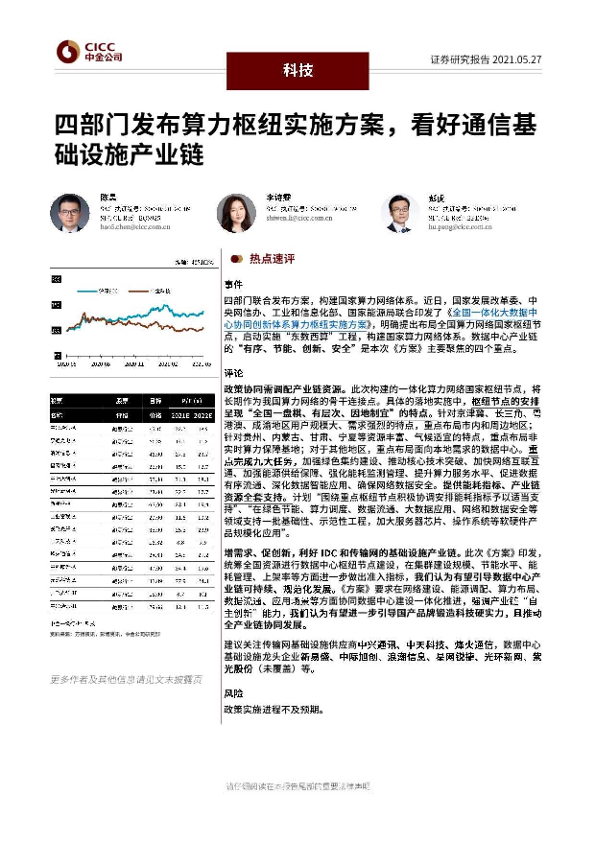 【中金公司】【20210527】四部门发布算力枢纽实施方案,看好通信基础设施产业链-5页
