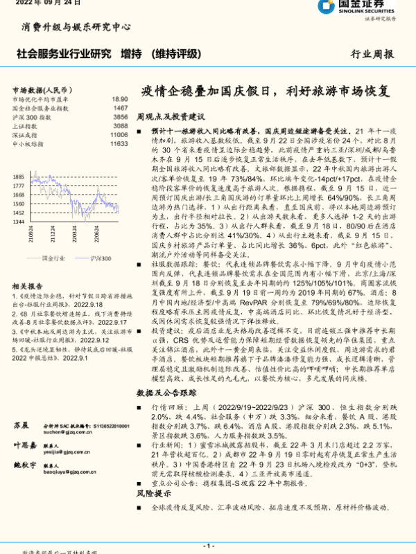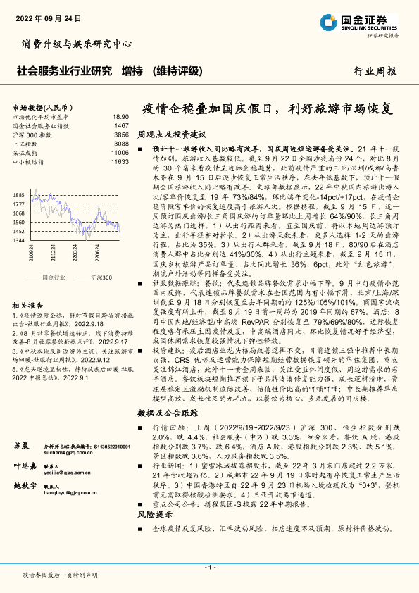 【国金证券】【20220924】社会服务行业周报:疫情企稳叠加国庆假日,利好旅游市场恢复-17页