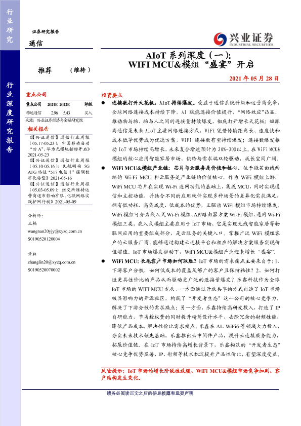 【兴业证券】【20210528】AIoT系列深度(一): WIFI MCU&模组“盛宴”开启-42页