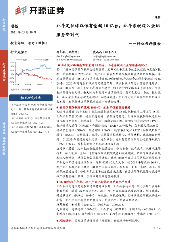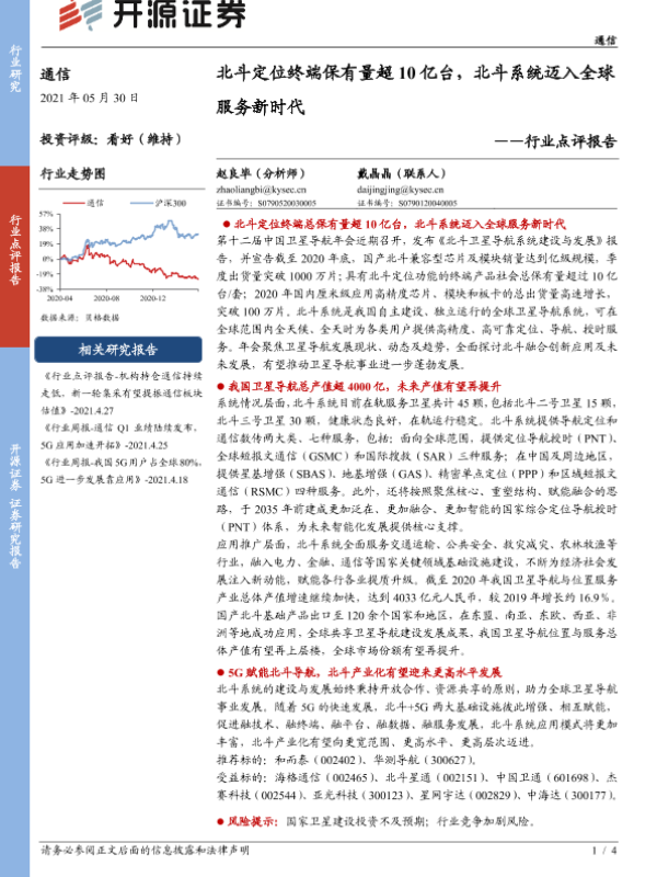 【开源证券】【20210530】通信行业点评报告:北斗定位终端保有量超10亿台,北斗系统迈入全球服务新时代-4页