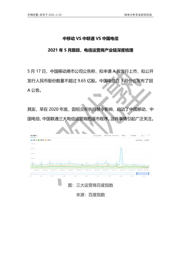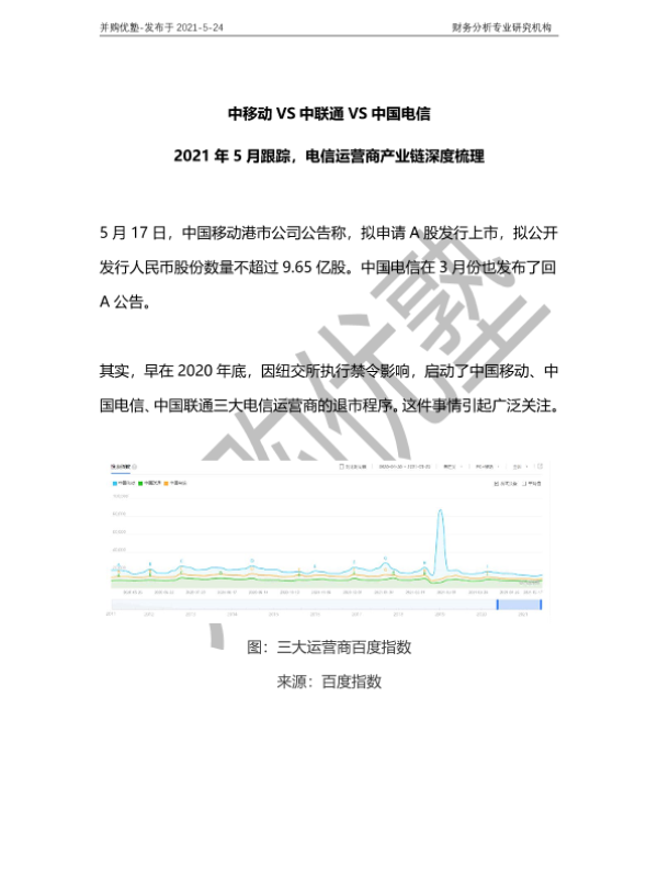 【并购优塾】【20210524】中移动VS中联通VS中国电信:2021年5月跟踪,电信运营商产业链深度梳理-27页