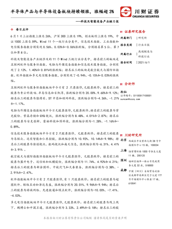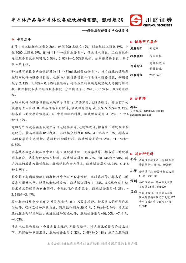 【川财证券】【20210601】科技及智能设备产业链日报:半导体产品与半导体设备板块持续领涨,涨幅超3%-4页
