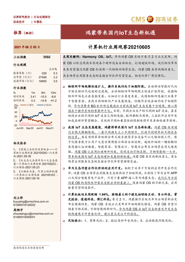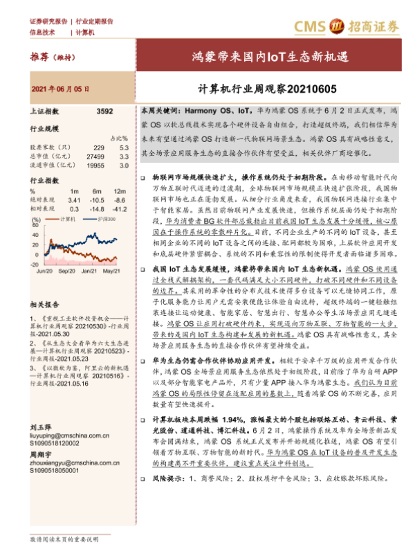 【海通证券】【20210605】计算机行业周观察:鸿蒙带来国内IoT生态新机遇-9页