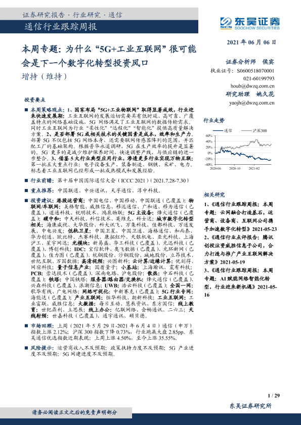 工业互联网 投资分析 数字化转型 通信行业 5G