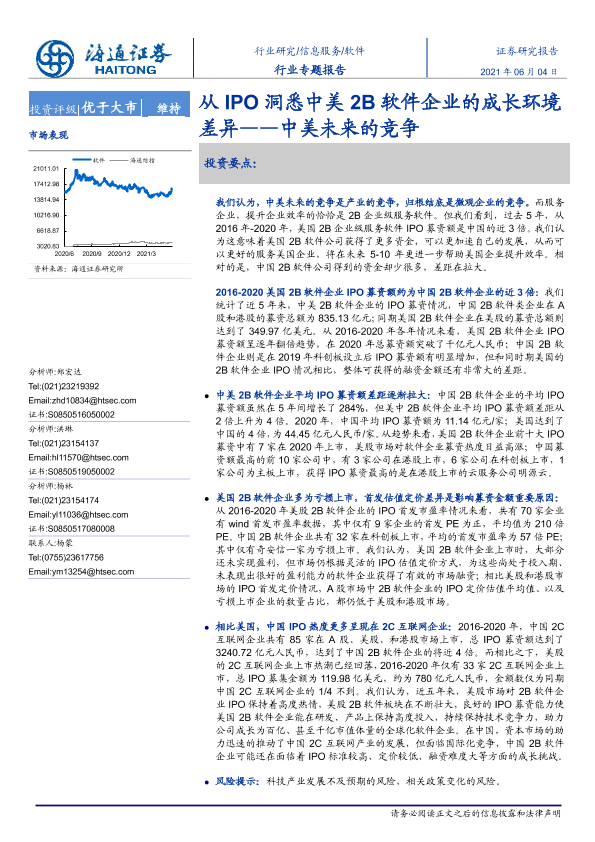 【海通证券】【20210604】20210604-海通证券-软件行业专题报告:中美未来的竞争-从IPO洞悉中美2B软件企业的成长环境差异-15页