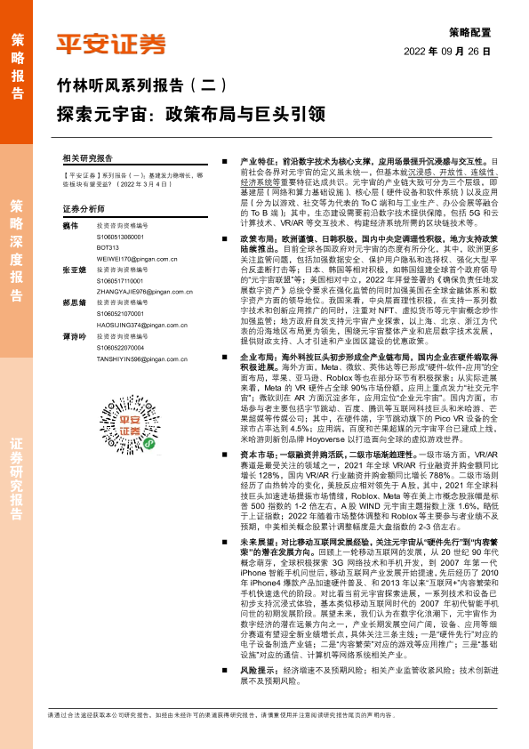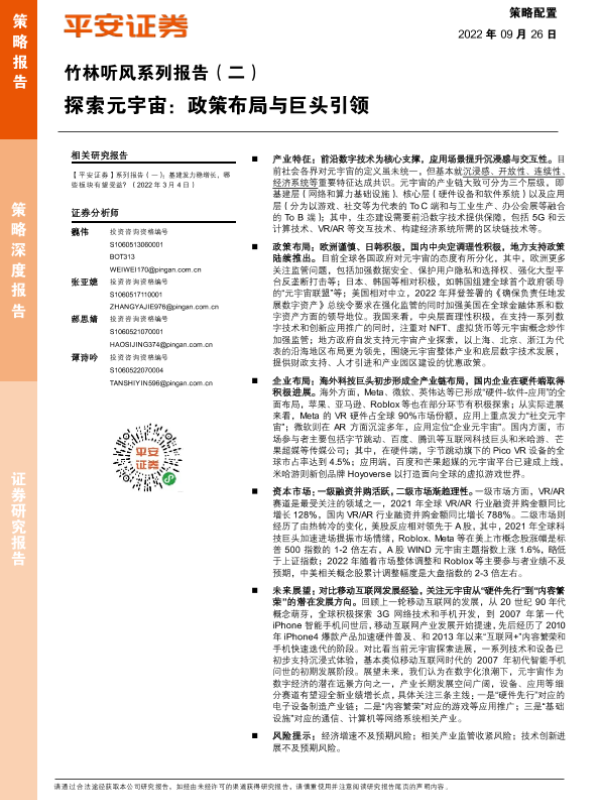 【平安证券】【20220926】竹林听风系列报告(二):探索元宇宙,政策布局与巨头引领-30页