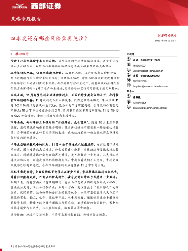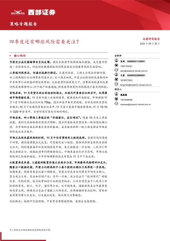 【西部证券】【20220925】策略专题报告:四季度还有哪些风险需要关注?-18页