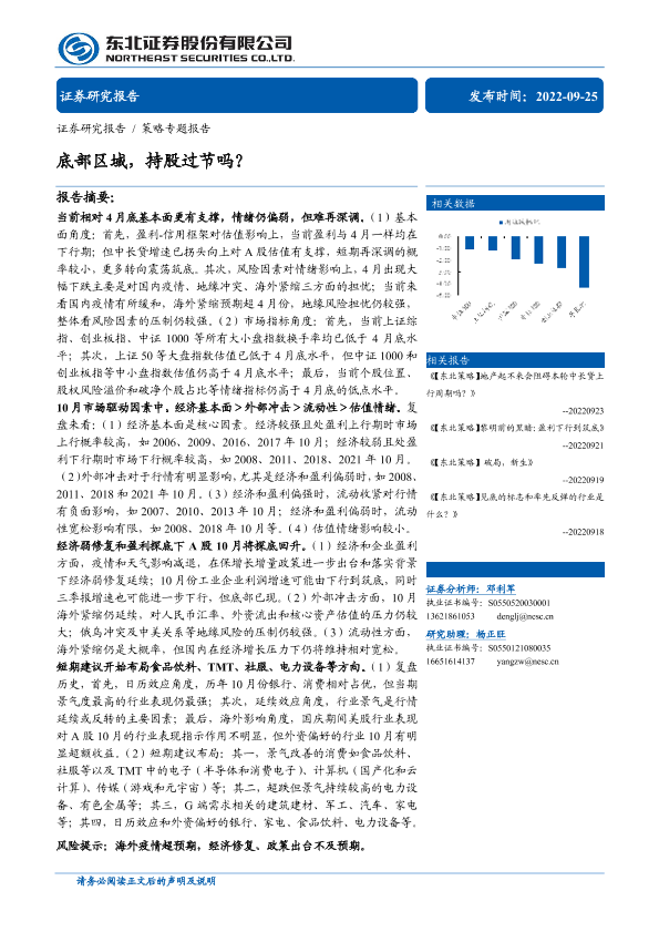 【东北证券】【20220925】策略专题报告:底部区域,持股过节吗?-29页