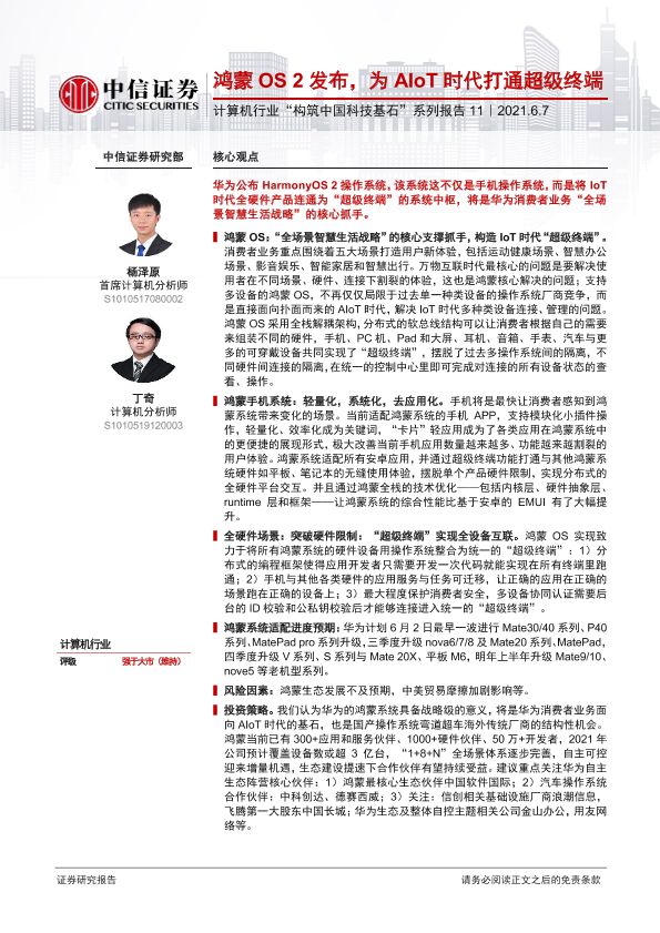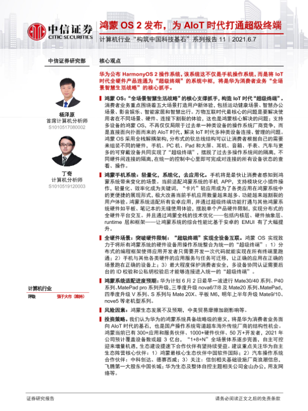 【中信证券】【20210607】计算机行业“构筑中国科技基石”系列报告11:鸿蒙OS2发布,为AIoT时代打通超级终端-5页