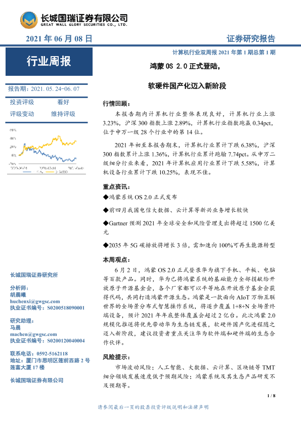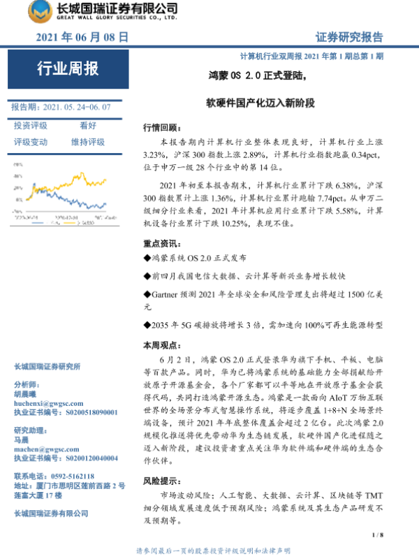 【长城国瑞证券】【20210608】计算机行业双周报2021年第1期总第1期:鸿蒙OS2.0正式登陆,软硬件国产化迈入新阶段-8页