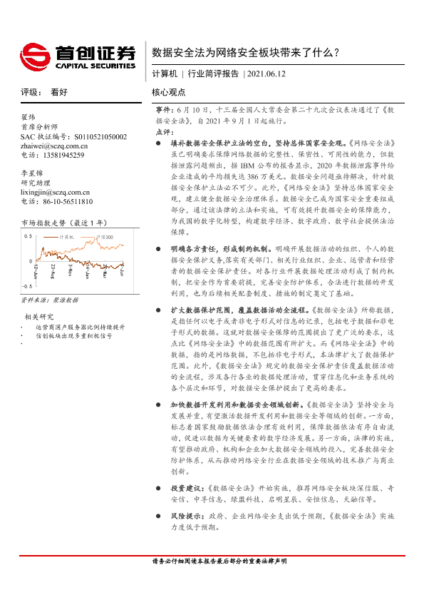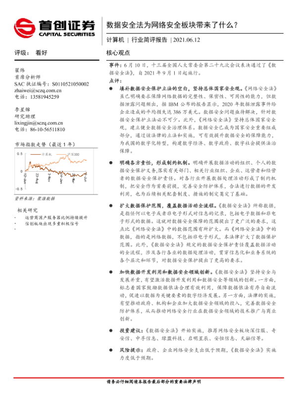 【首创证券】【20210612】20210612-首创证券-计算机行业简评报告:数据安全法为网络安全板块带来了什么?-2页