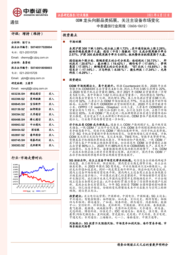 【中泰证券】【20210612】中泰通信行业周报:ODM龙头向新品类拓展,关注主设备市场变化-16页