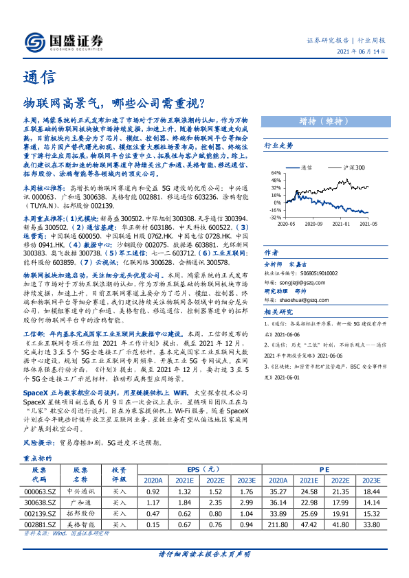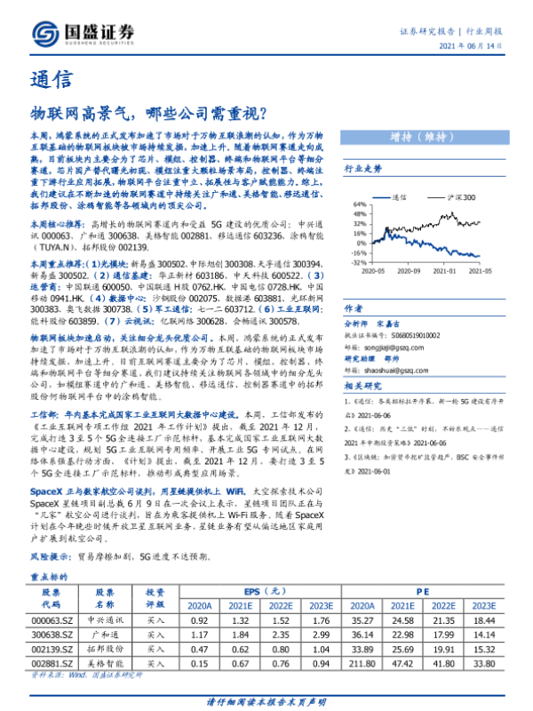 【国盛证券】【20210614】通信行业周报:物联网高景气,哪些公司需重视?-14页