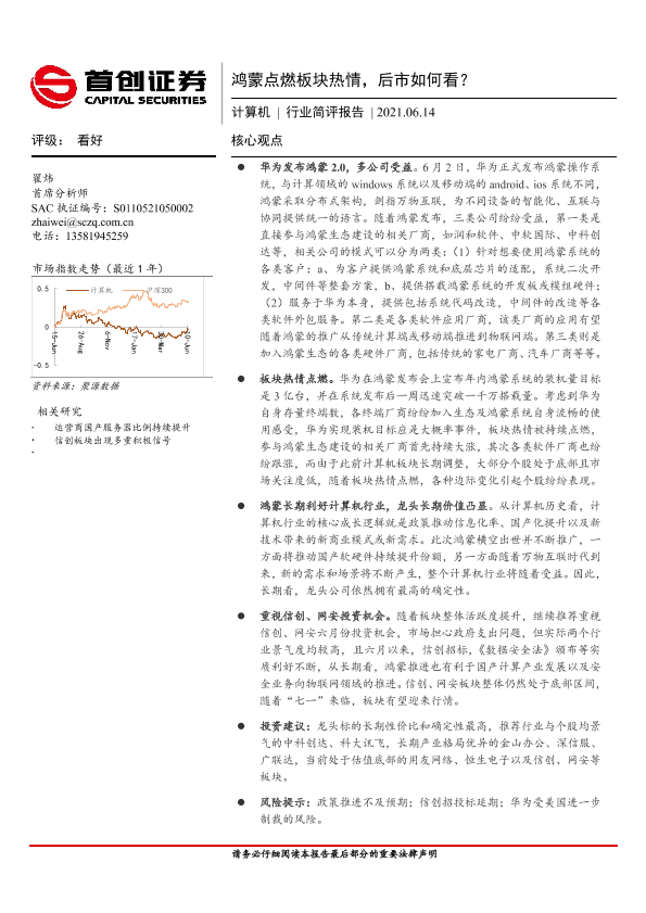 【首创证券】【20210614】20210614-首创证券-计算机行业简评报告:鸿蒙点燃板块热情,后市如何看?-2页