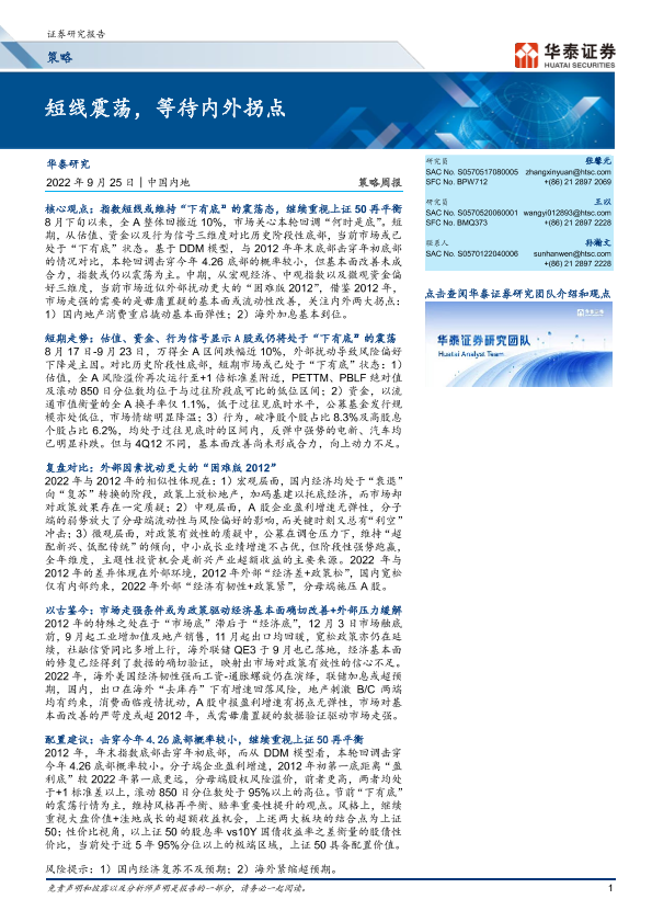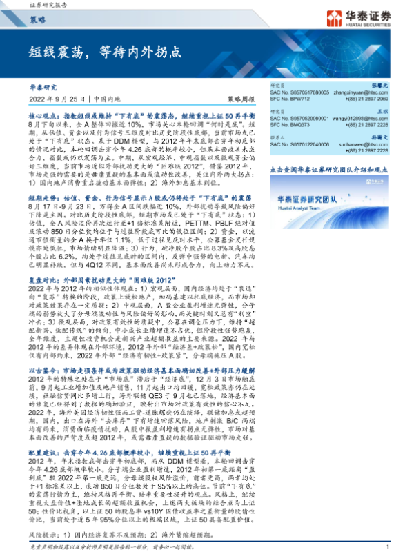【华泰证券】【20220925】策略周报:短线震荡,等待内外拐点-24页