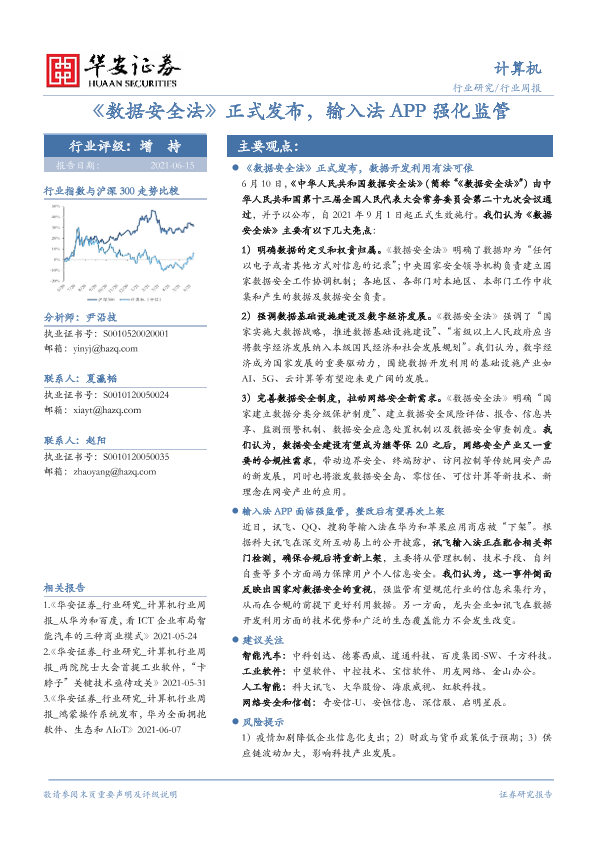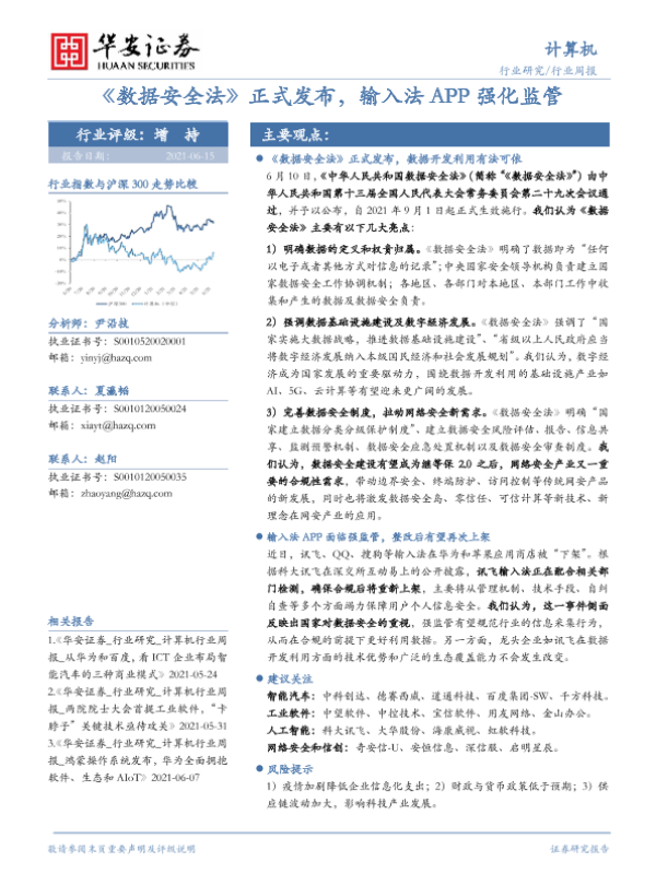 【华安证券】【20210615】20210615-华安证券-计算机行业周报:《数据安全法》正式发布,输入法APP强化监管-15页
