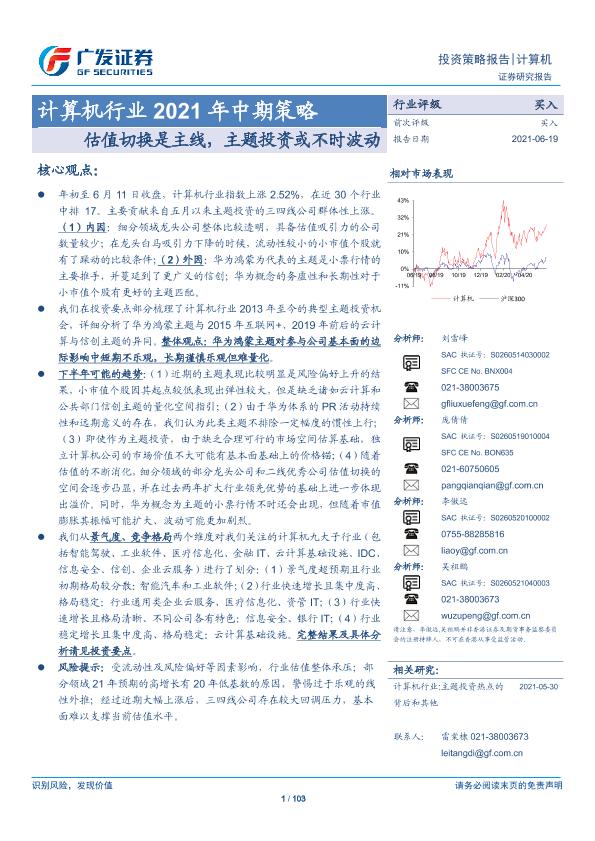 【广发证券】【20210619】计算机行业 2021年中期策略:估值切换是主线,主题投资或不时波动-103页