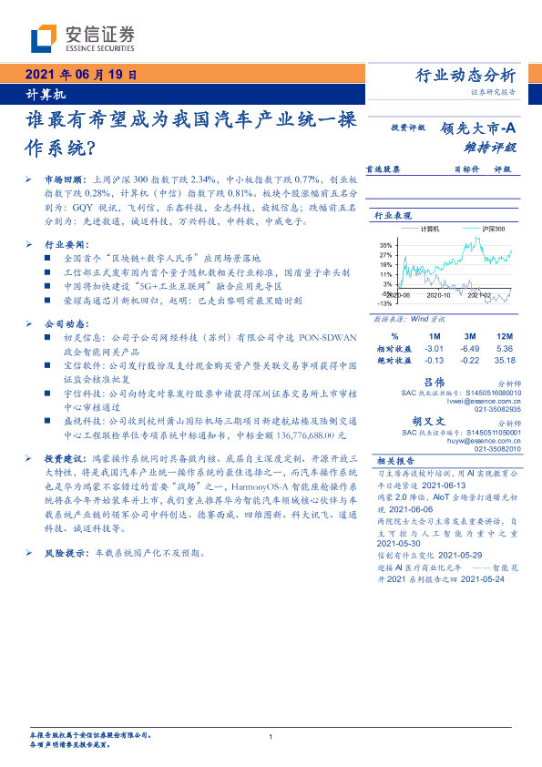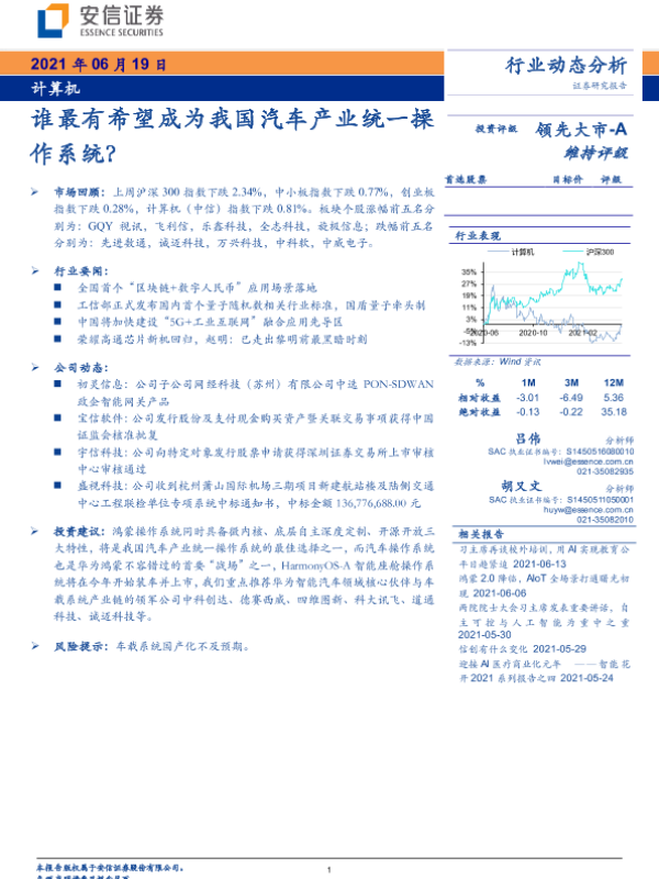 【安信证券】【20210619】谁最有希望成为我国汽车产业统一操作系统?-20页