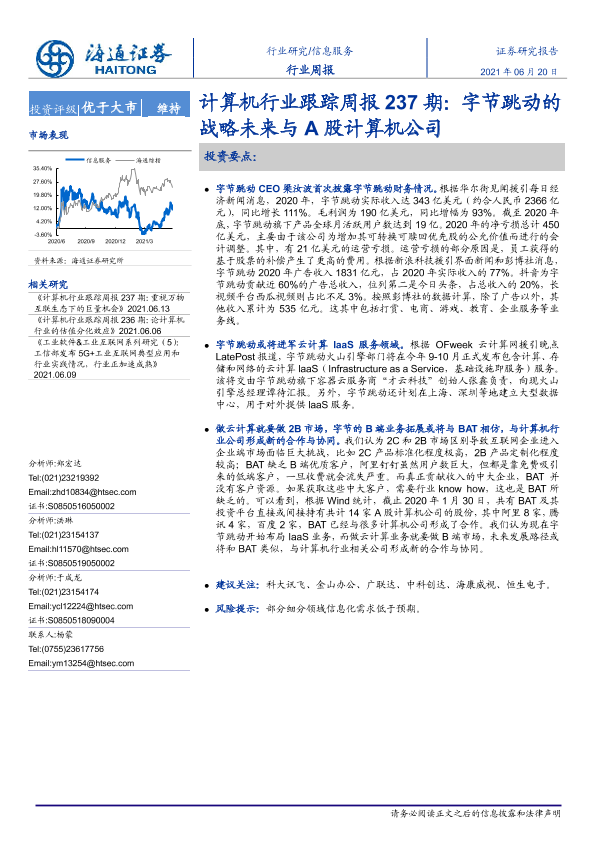 【海通证券】【20210620】计算机行业跟踪周报237期:字节跳动的战略未来与A股计算机公司-6页