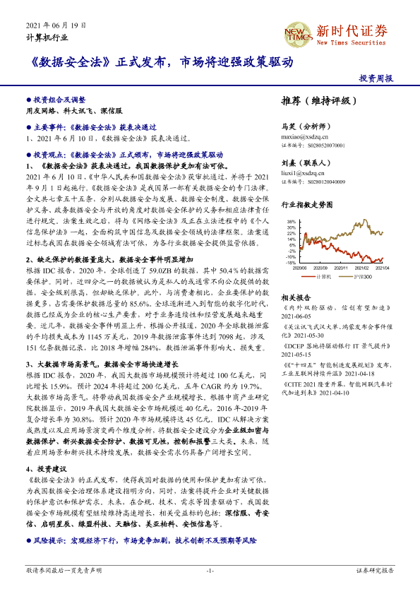 【新时代证券】【20210619】计算机行业投资周报:《数据安全法》正式发布,市场将迎强政策驱动-25页