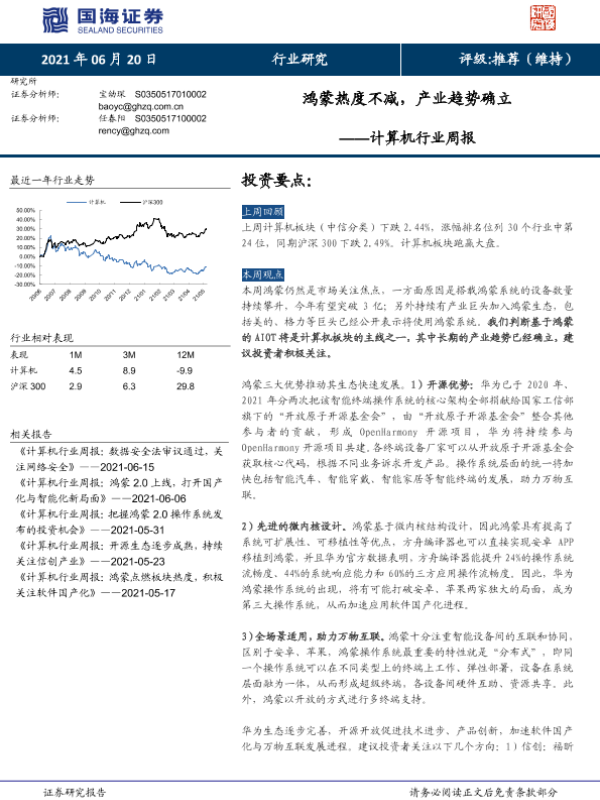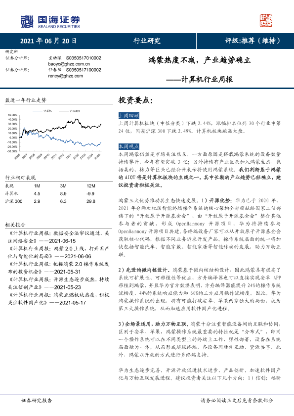 【国海证券】【20210620】计算机行业周报:鸿蒙热度不减,产业趋势确立-11页