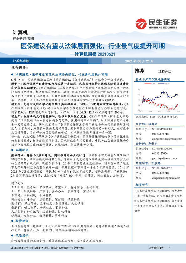 【民生证券】【20210621】20210621-民生证券-计算机行业周报:医保建设有望从法律层面强化,行业景气度提升可期-17页