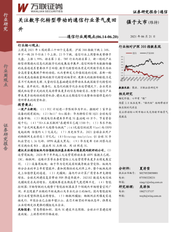 【万联证券】【20210621】20210621-万联证券-通信行业周观点:关注数字化转型带动的通信行业景气度回升-12页