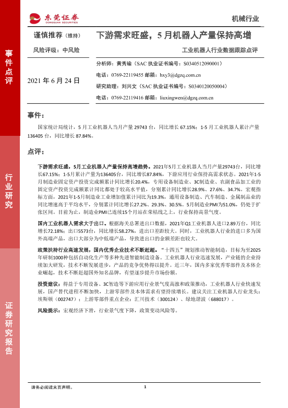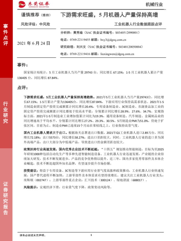 【东莞证券】【20210624】工业机器人行业数据跟踪点评:下游需求旺盛,5月机器人产量保持高增-2页