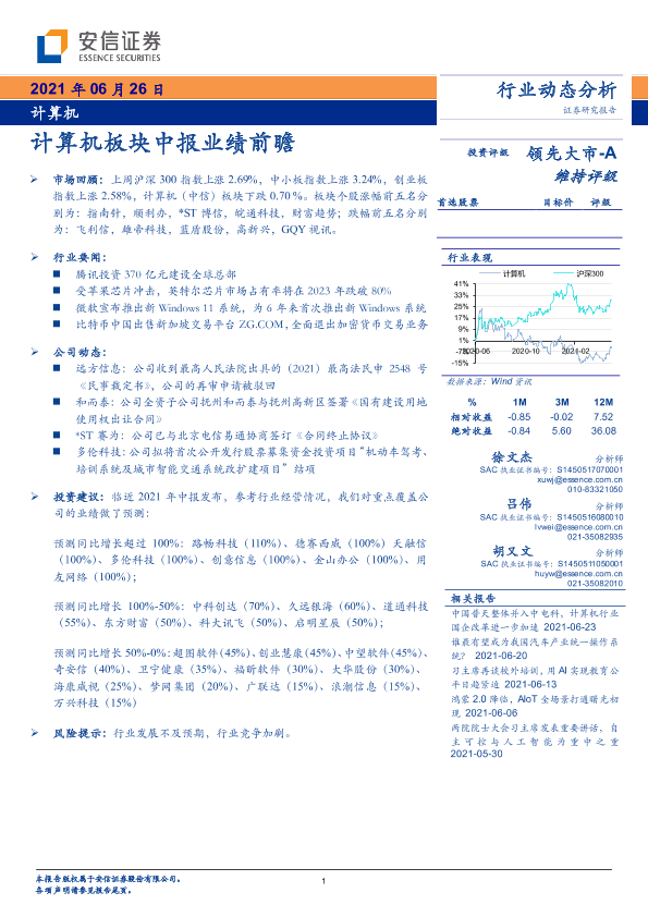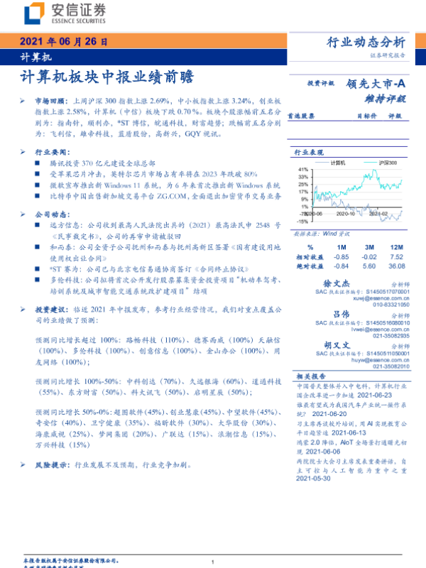 【安信证券】【20210626】计算机板块中报业绩前瞻-19页