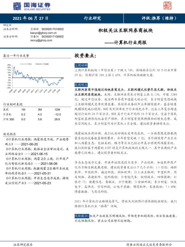 【国海证券】【20210627】计算机行业周报:积极关注互联网券商板块-10页