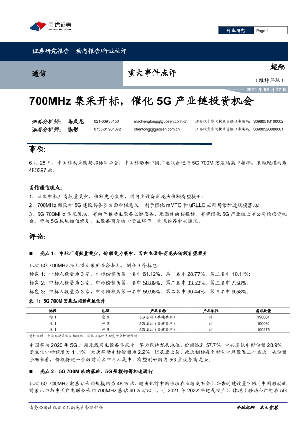 【国信证券】【20210627】通信重大事件点评:700MHz集采开标,催化5G产业链投资机会-4页