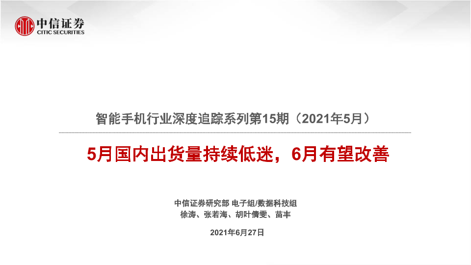 【中信证券】【20210627】智能手机行业深度追踪系列第15期(2021年5月):5月国内出货量持续低迷,6月有望改善-43页