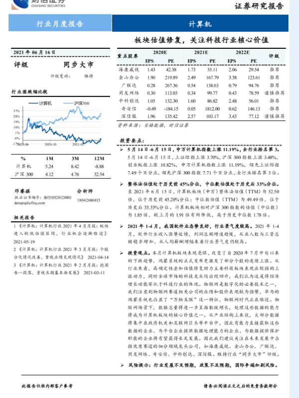 【财信证券】【20210616】计算机行业月度报告:板块估值修复,关注科技行业核心价值-9页