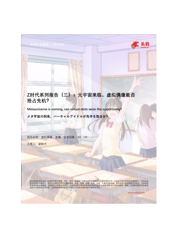 【头豹研究院】【202106】Z时代系列报告(三):元宇宙来临,虚拟偶像能否抢占先机?-34页