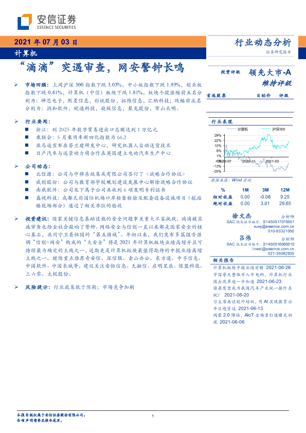 【安信证券】【20210703】计算机行业动态分析:“滴滴”突遇审查,网安警钟长鸣-23页