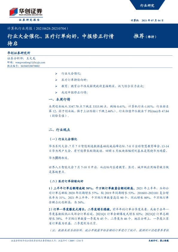 【华创证券】【20210704】计算机行业周报:行业大会催化、医疗订单向好,中报修正行情待启-5页