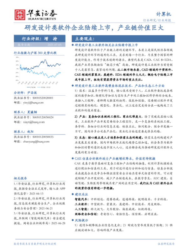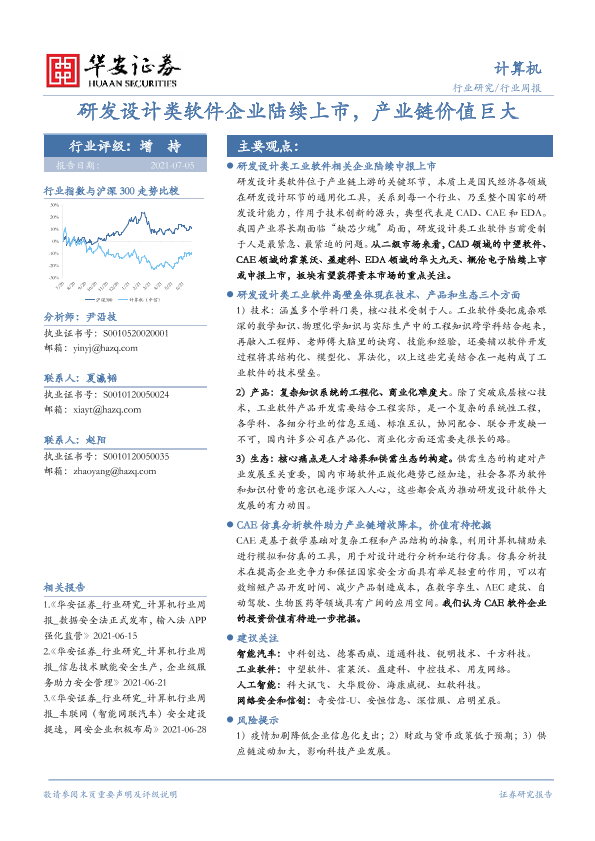 【华安证券】【20210705】计算机行业周报:研发设计类软件企业陆续上市,产业链价值巨大-14页