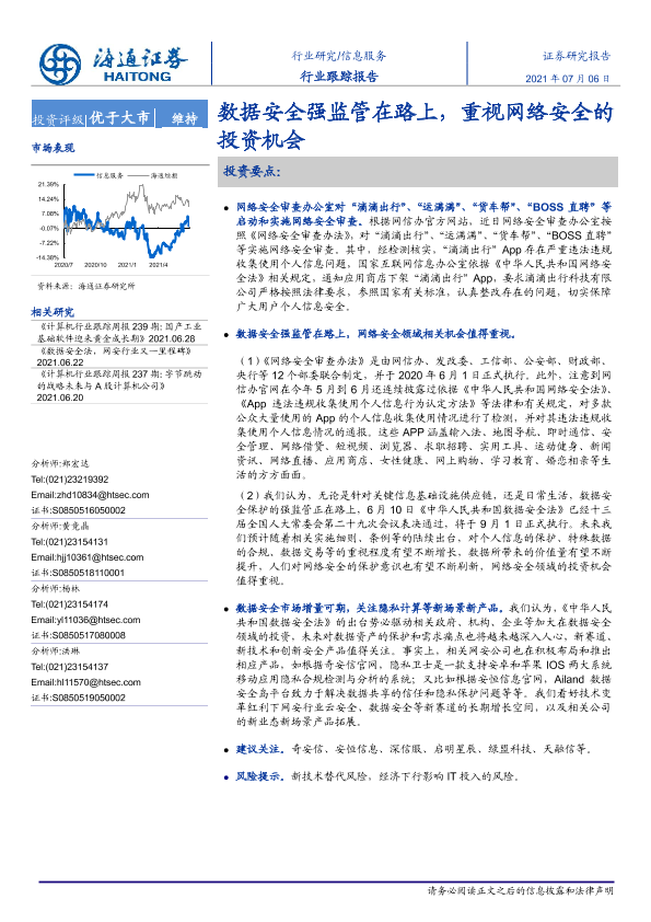 【海通证券】【20210706】信息服务:数据安全强监管在路上,重视网络安全的投资机会-2页