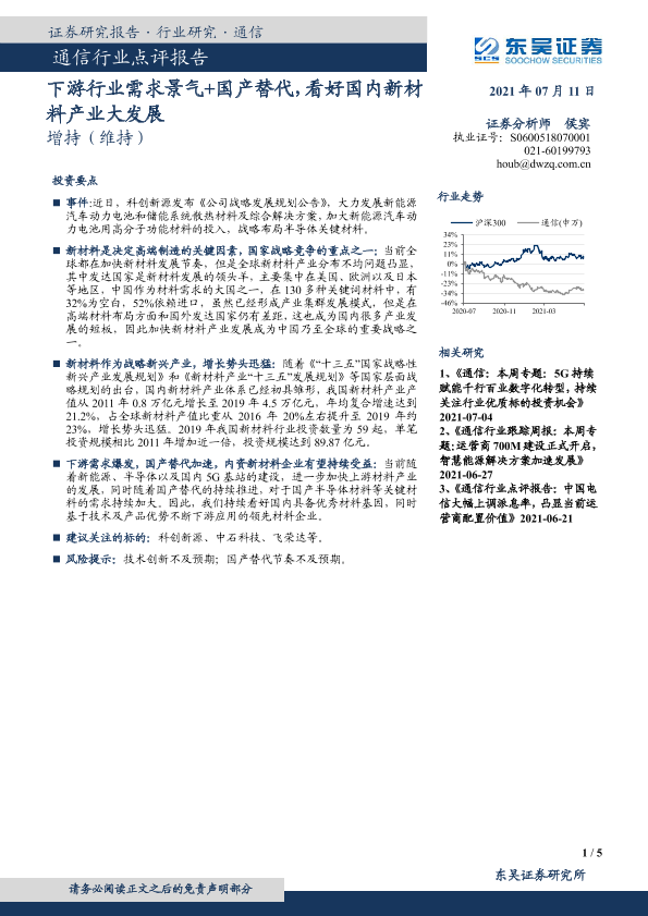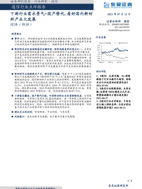 【东吴证券】【20210711】通信行业点评报告:下游行业需求景气+国产替代,看好国内新材料产业大发展-5页