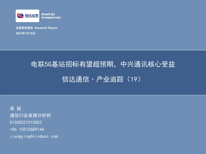 【信达证券】【20210710】电联5G基站招标有望超预期,中兴通讯核心受益-52页