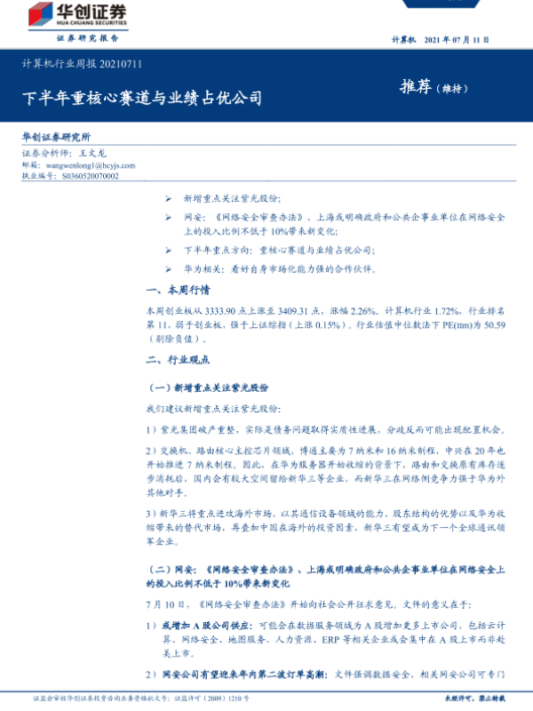 【华创证券】【20210711】计算机行业周报:下半年重核心赛道与业绩占优公司-6页