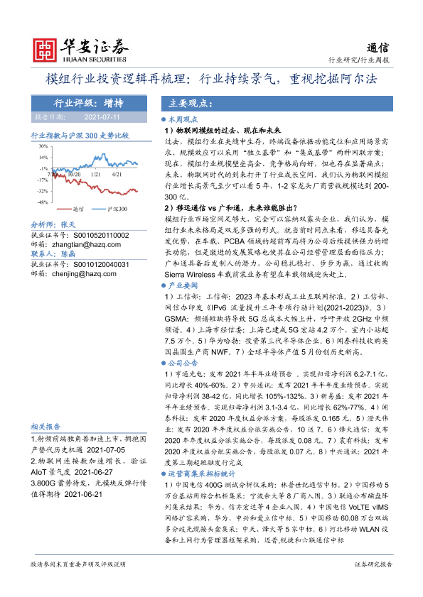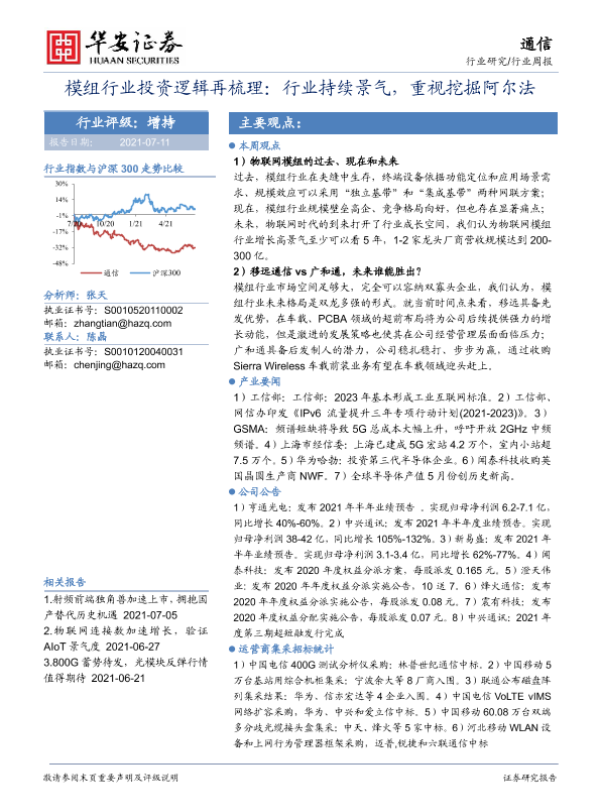 【华安证券】【20210711】20210711-华安证券-通信行业周报:模组行业投资逻辑再梳理:行业持续景气,重视挖掘阿尔法-19页