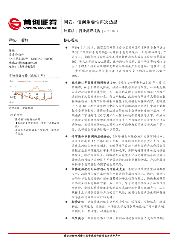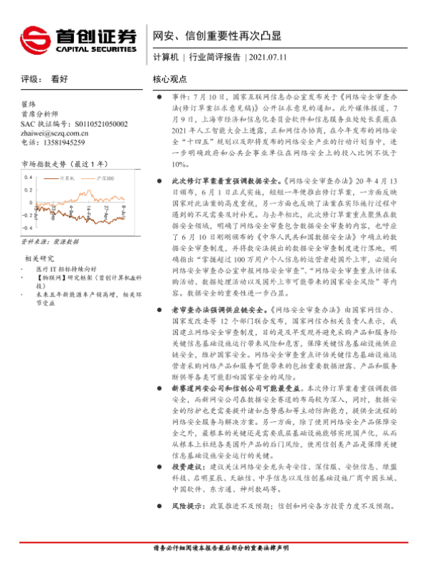 【首创证券】【20210711】计算机行业简评报告:网安、信创重要性再次凸显-2页