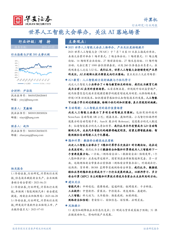 【华安证券】【20210712】20210712-华安证券-计算机行业周报:世界人工智能大会举办,关注AI落地场景-14页
