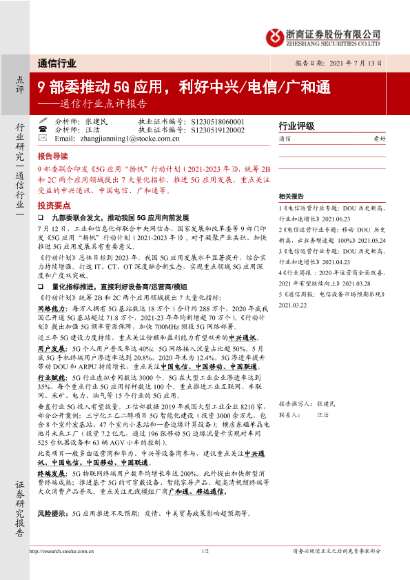 【浙商证券】【20210713】9部委推动5G应用,利好中兴/电信/广和通-2页