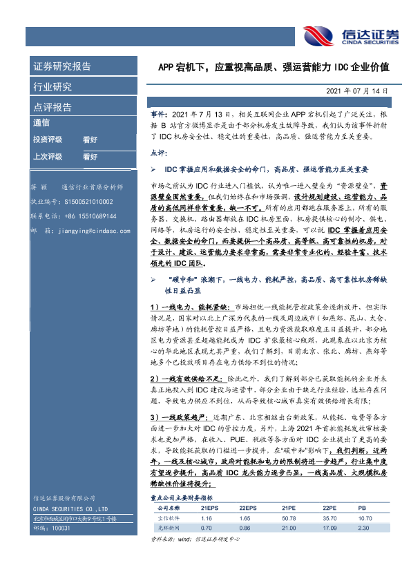 【信达证券】【20210714】APP宕机下,应重视高品质、强运营能力IDC企业价值-6页
